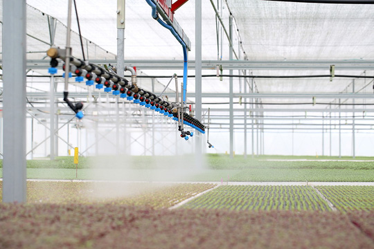 Toàn bộ các công đoạn từ gieo hạt đến thu hoạch đều được kiểm soát hoàn toàn tự động và khép kín nhằm đảm bảo giá trị dinh dưỡng cao trong rau. Hệ thống lưới chắn côn trùng được thiết kế hiện đại xung quanh nhà kính, hệ thống tưới tự động bằng nguồn nước sạch nên các sản phẩm rau mầm trồng trong nhà kính VinEco được kiểm soát hoàn toàn khỏi sâu bệnh, đảm bảo tối đa các tiêu chuẩn vệ sinh, an toàn thực phẩm.